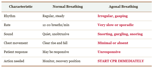 The first skill is recognition. Bystanders frequently mistake agonal breathing—gasping, irregular, snorting breaths—for normal breathing. This is catastrophic. Agonal breathing occurs in 40-60% of cardiac arrest cases and is a sign the brain is dying, not recovering.